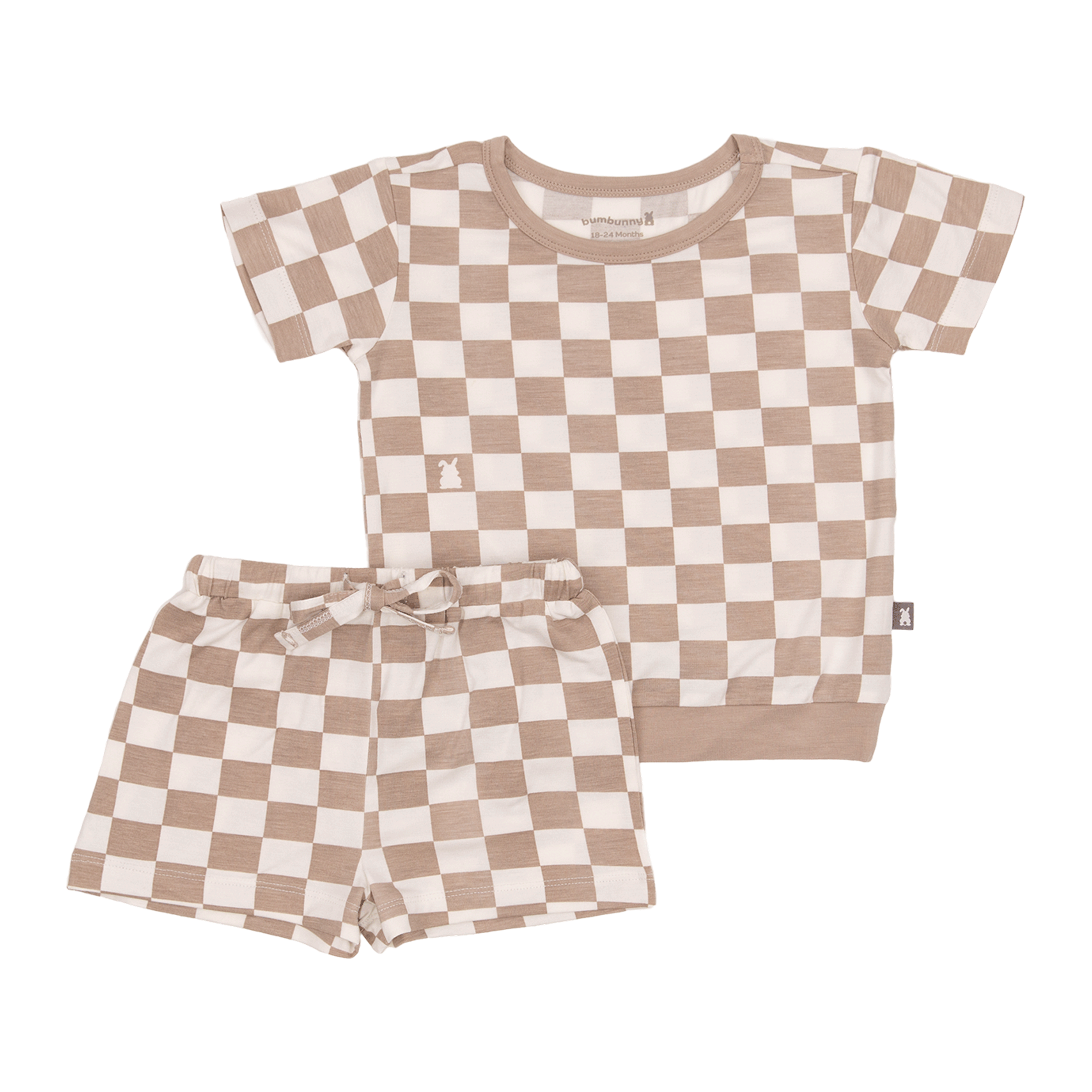 Two-Piece Short Jogger Set in Toffee Check