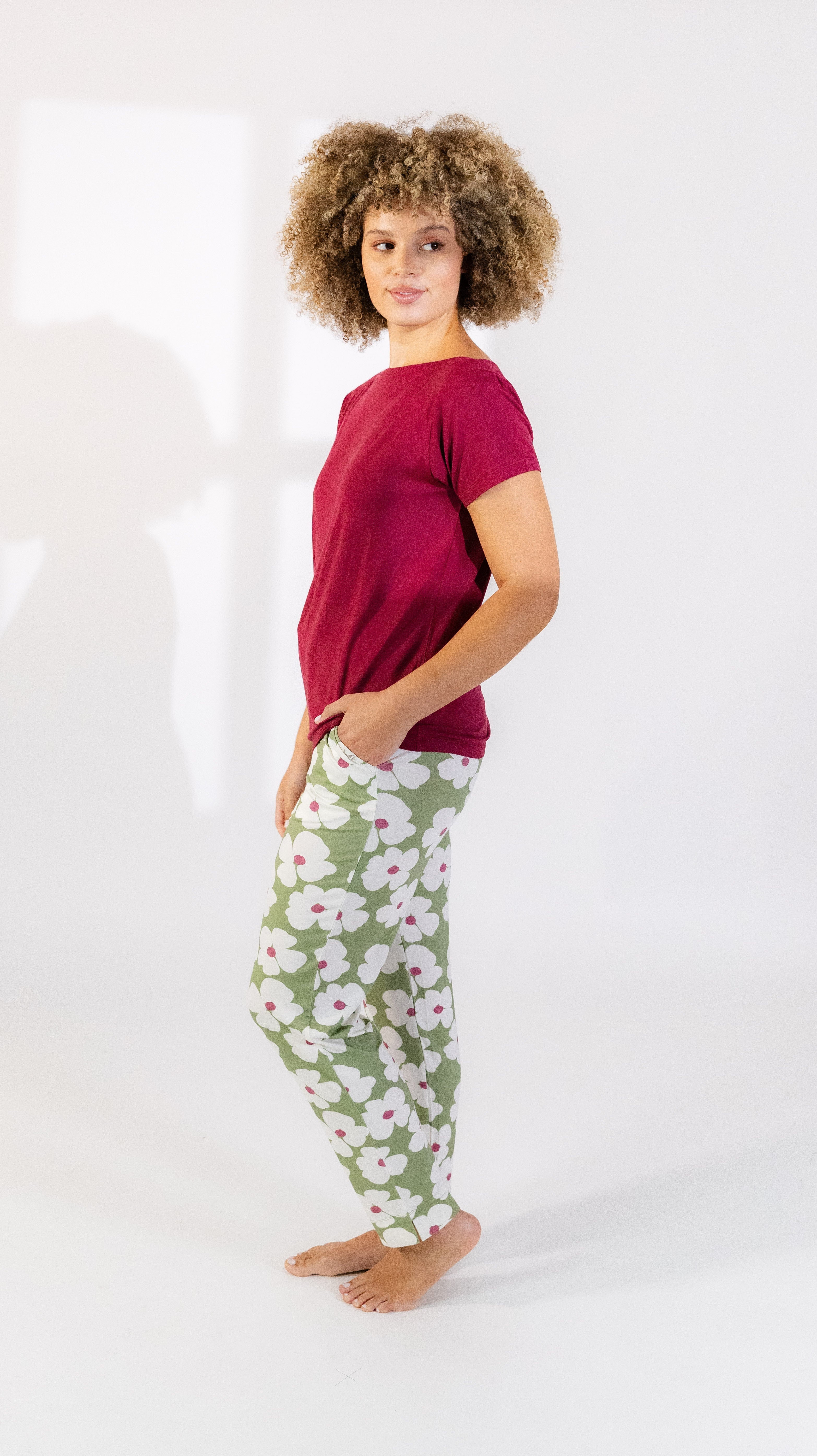 Experience comfort and style like never before with our basic relaxed fit long pant. Designed specifically for women, these pants are the epitome of relaxation and versatility. A relaxed fit ensures a comfortable and flattering silhouette, allowing you to move freely and with ease. Featuring a three-quarter inch elastic waistband, with drawstring, these pants provide a secure and adjustable fit. With the addition of pockets, these pants offer both functionality and style. The modal fabric used in these pants not only feels incredibly soft against the skin but also has excellent moisture-wicking properties, keeping you cool and dry throughout the day. Whether you are lounging at home, running errands, or meeting friends for a casual outing, these pants will keep you comfortable and stylish. The basic design of these pants makes them highly versatile, allowing you to pair them with a variety of tops and shoes to create different looks.