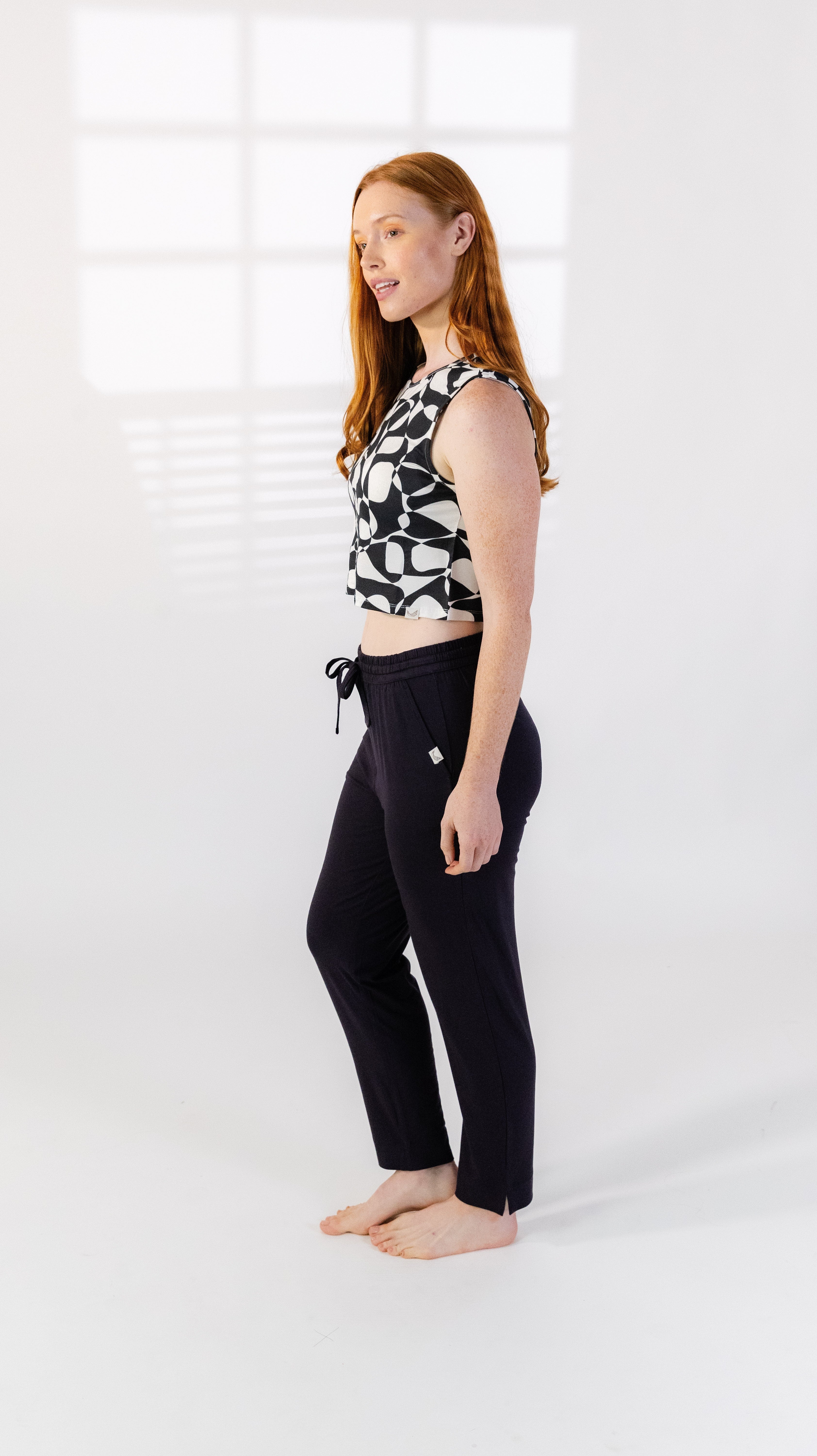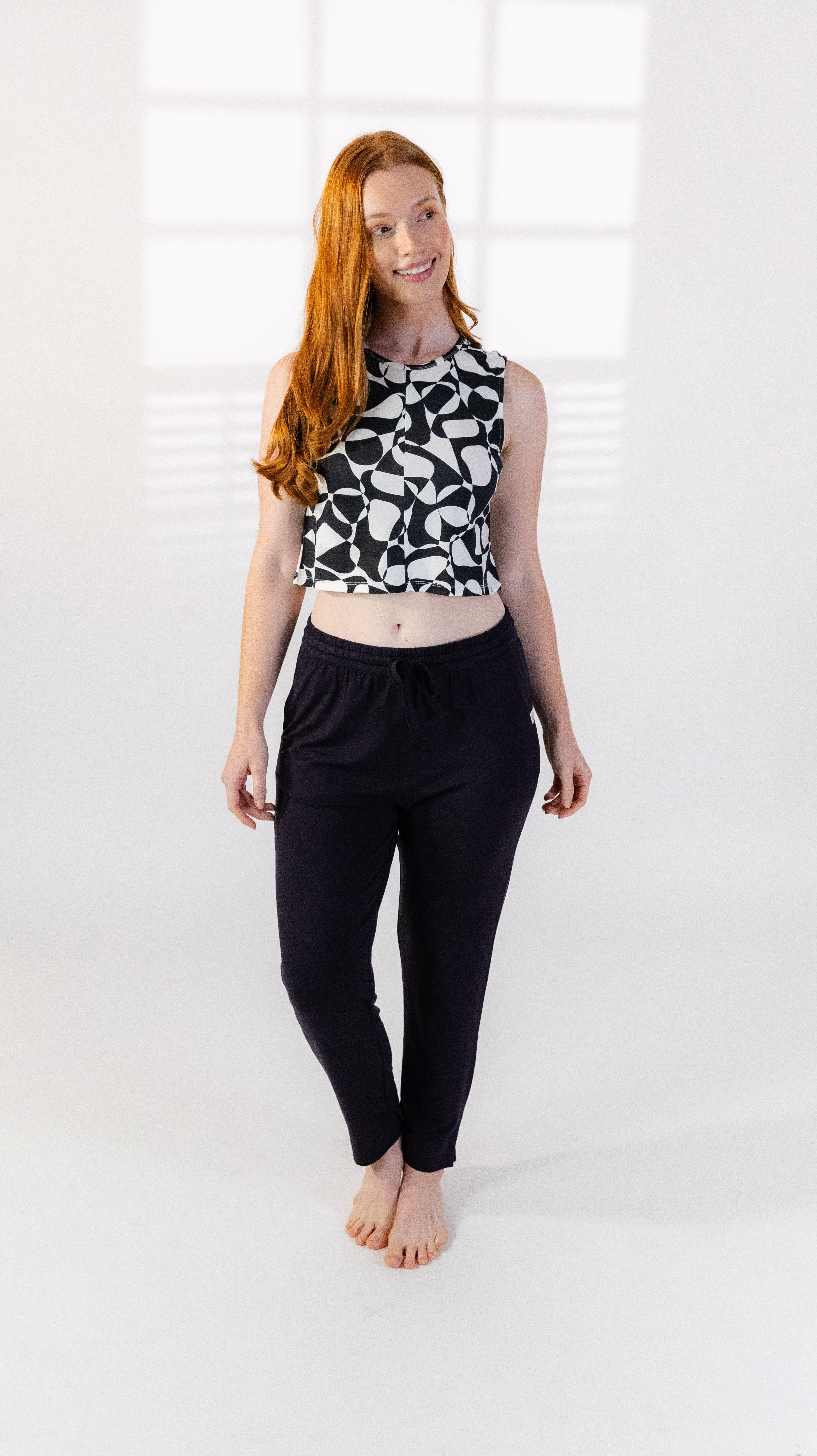 Crafted from sumptuous modal fabric, our Montauk Tank redefines coziness in women's loungewear. This cropped tee promises a luxurious, buttery-soft touch against your skin. Its relaxed fit exudes laid-back chic, while the cropped length adds a contemporary edge, ideal for pairing with our high-waisted bottoms or as a trendy layering piece.