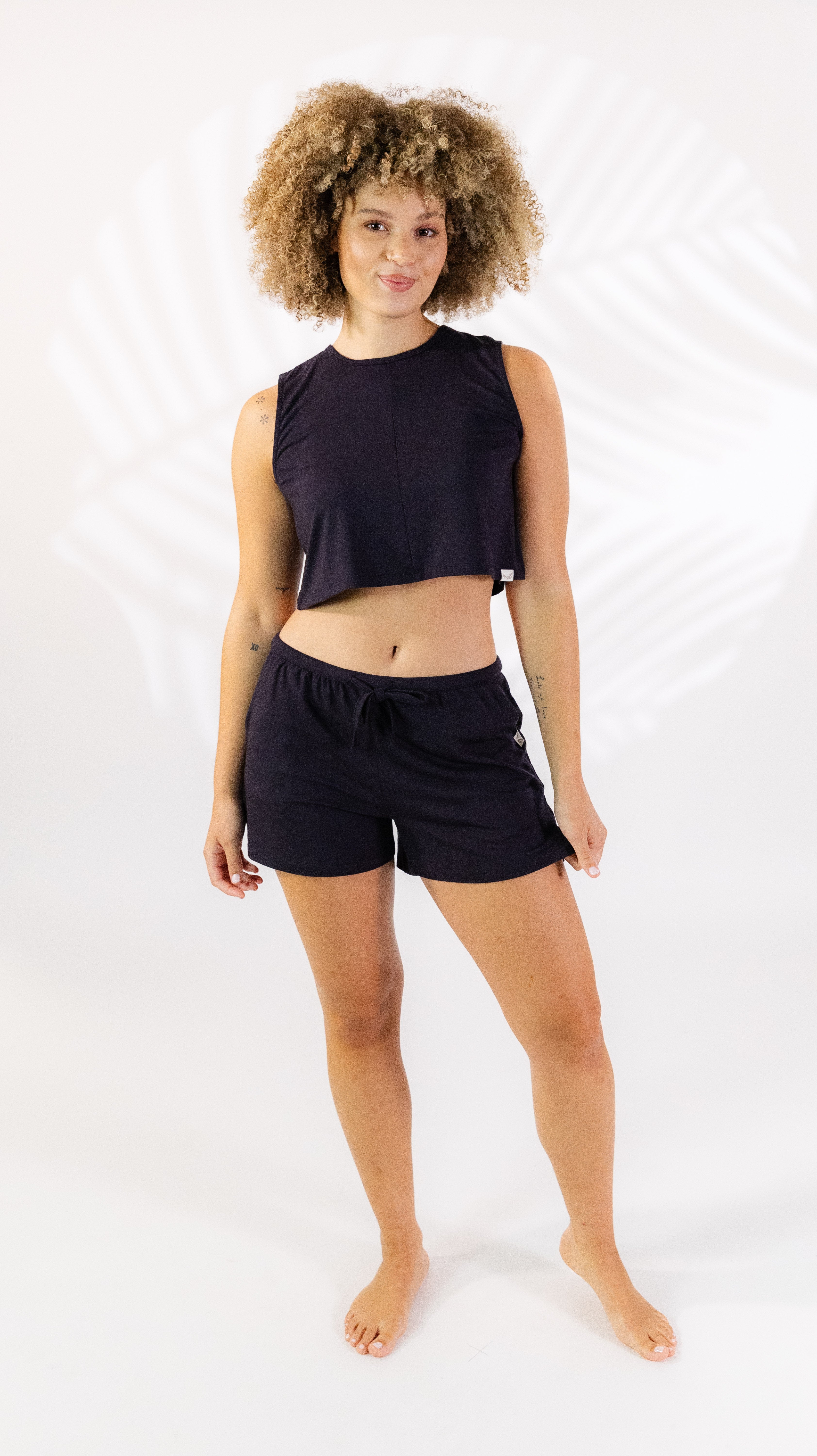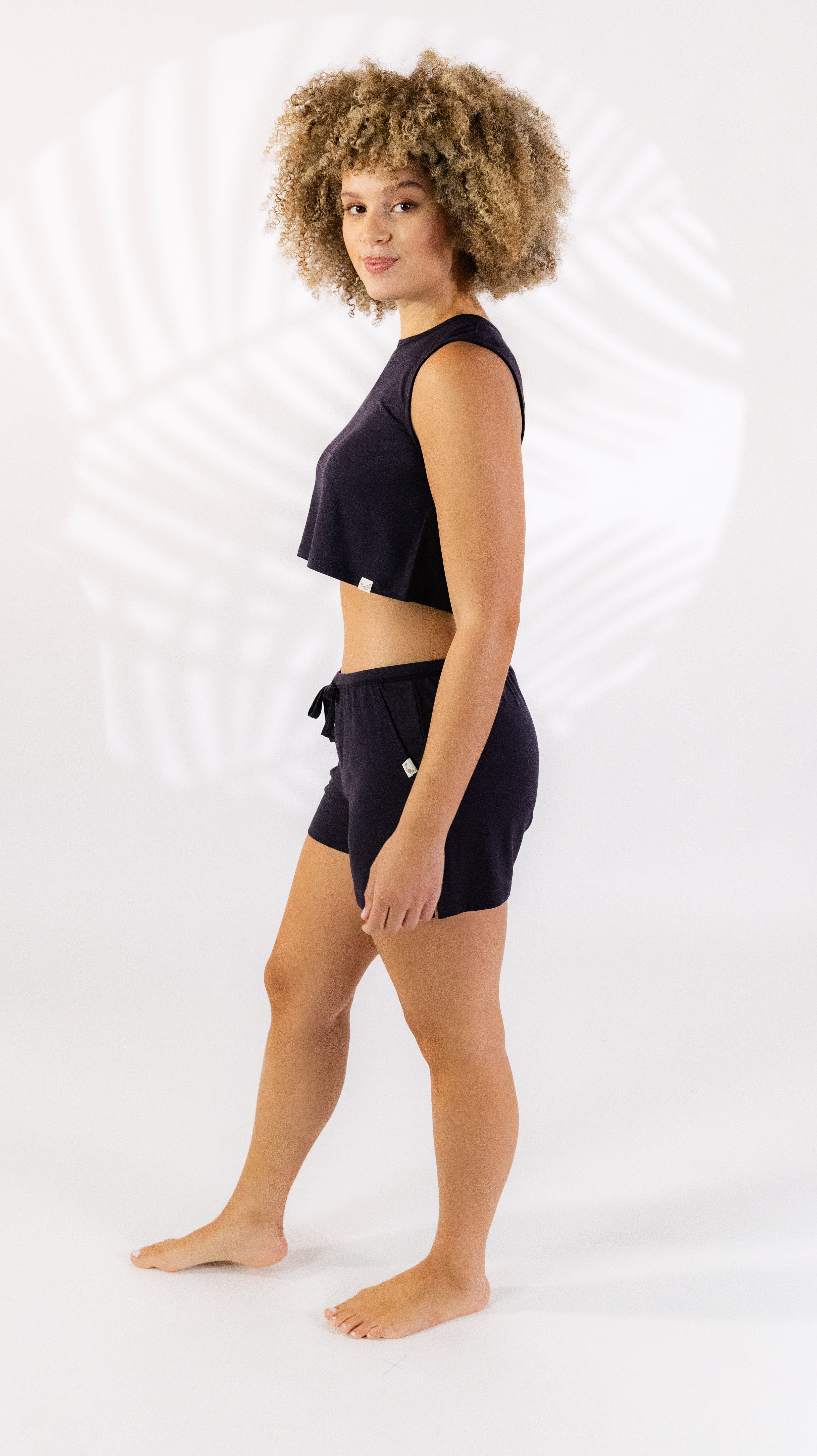 Crafted from sumptuous modal fabric, our Montauk Tank redefines coziness in women's loungewear. This cropped tee promises a luxurious, buttery-soft touch against your skin. Its relaxed fit exudes laid-back chic, while the cropped length adds a contemporary edge, ideal for pairing with our high-waisted bottoms or as a trendy layering piece.