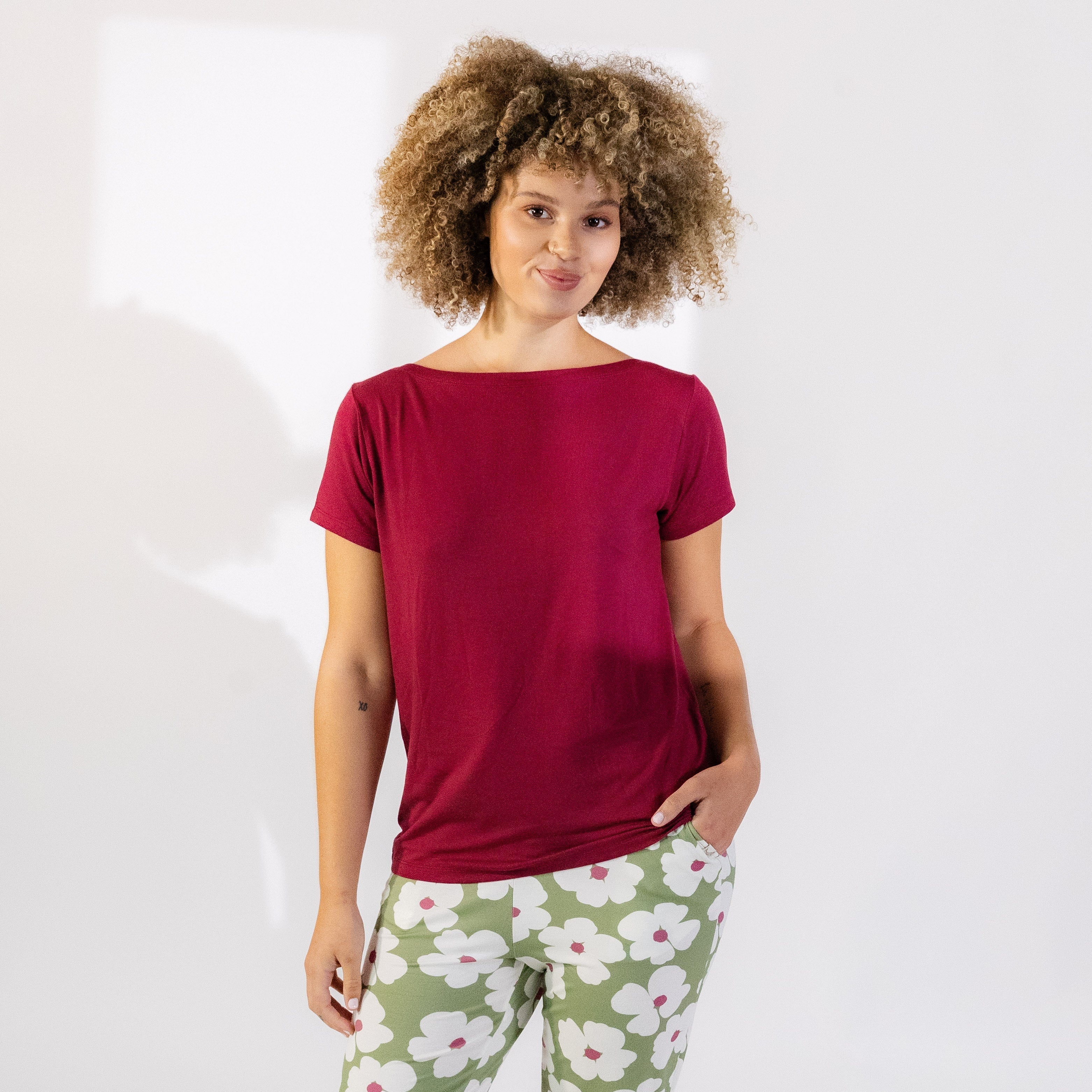 We love our women's boatneck short sleeve tee shirt, expertly crafted from soft and lightweight modal fabric. The Nantucket Tee is flattering on all body styles. This tee is designed to offer the perfect blend of comfort and style, making it a versatile addition to your wardrobe. The boatneck neckline adds a touch of elegance and sophistication, while the short sleeves provide a casual and relaxed look. Ideal for everyday wear, this boatneck tee can be effortlessly styled with jeans, skirts, or shorts for various occasions. This tee can be worn off the shoulder or on for some style variations Whether you are heading to the office, meeting friends for brunch, or simply running errands, this tee provides comfort without compromising on style.