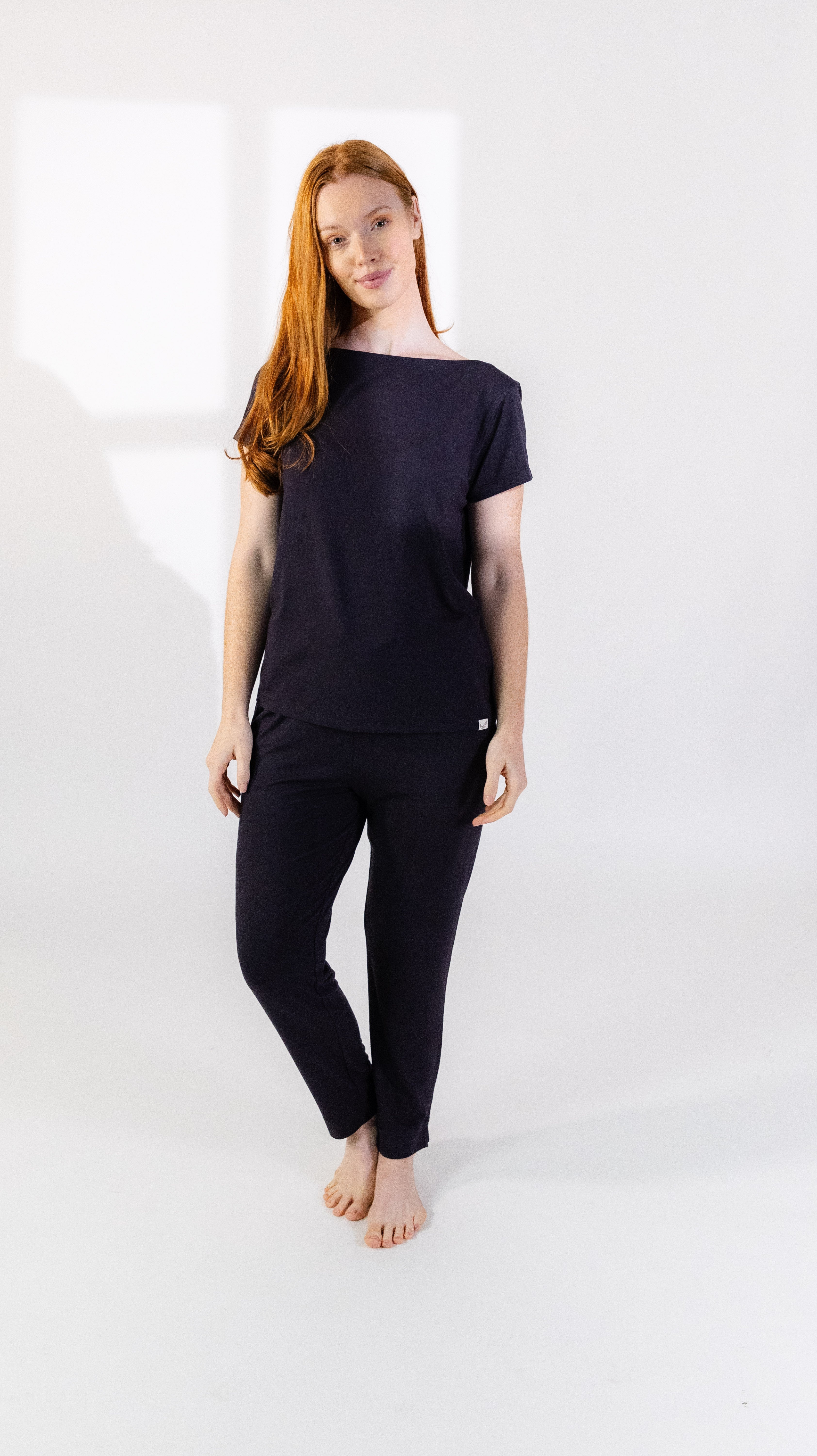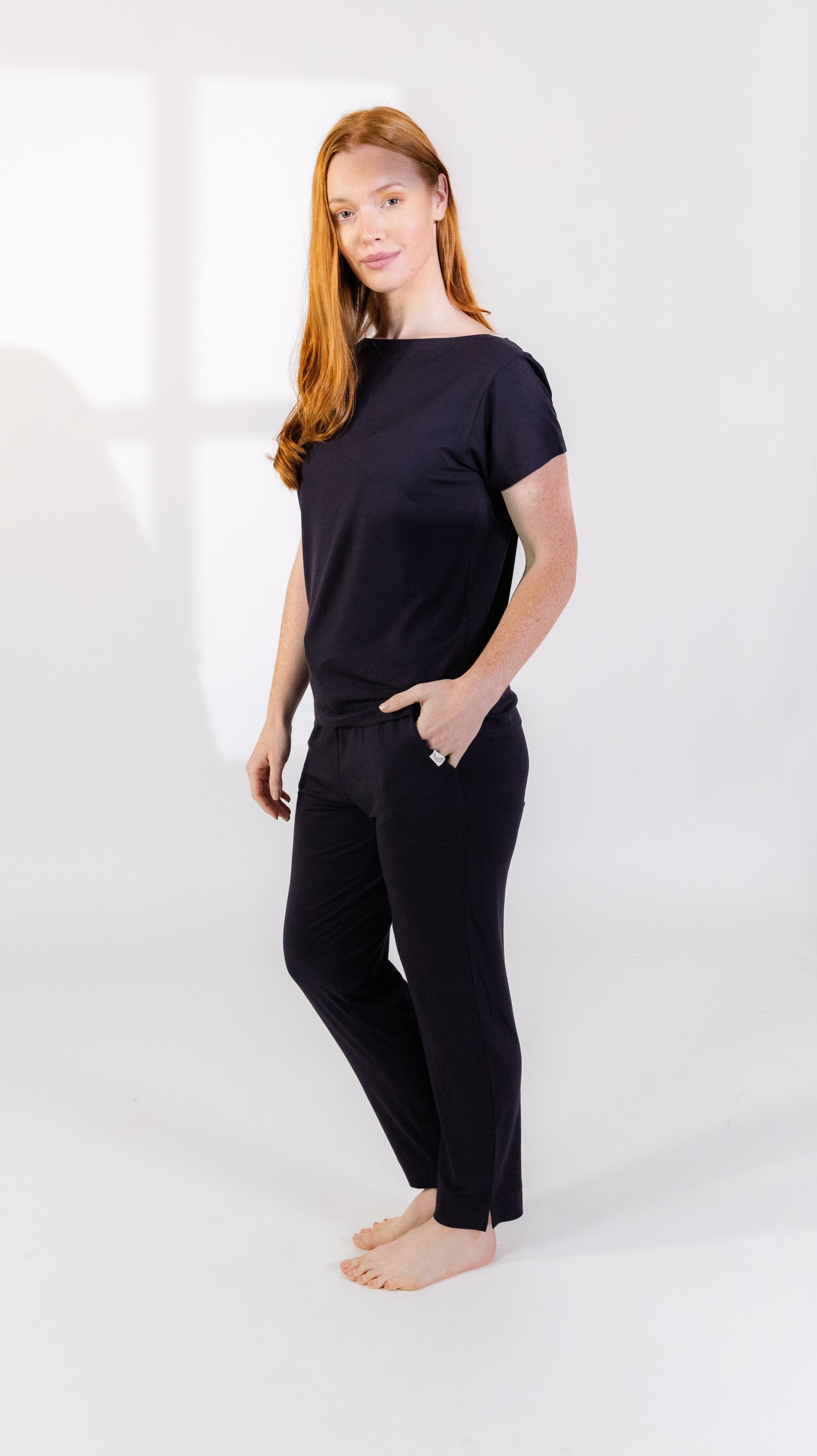 We love our women's boatneck short sleeve tee shirt, expertly crafted from soft and lightweight modal fabric. The Nantucket Tee is flattering on all body styles. This tee is designed to offer the perfect blend of comfort and style, making it a versatile addition to your wardrobe. The boatneck neckline adds a touch of elegance and sophistication, while the short sleeves provide a casual and relaxed look. Ideal for everyday wear, this boatneck tee can be effortlessly styled with jeans, skirts, or shorts for various occasions. This tee can be worn off the shoulder or on for some style variations Whether you are heading to the office, meeting friends for brunch, or simply running errands, this tee provides comfort without compromising on style.