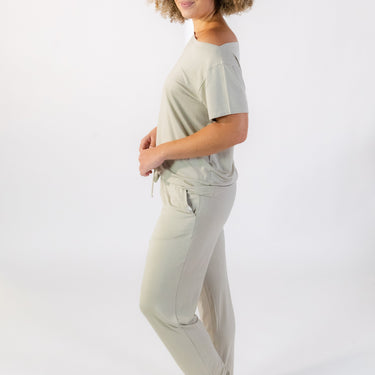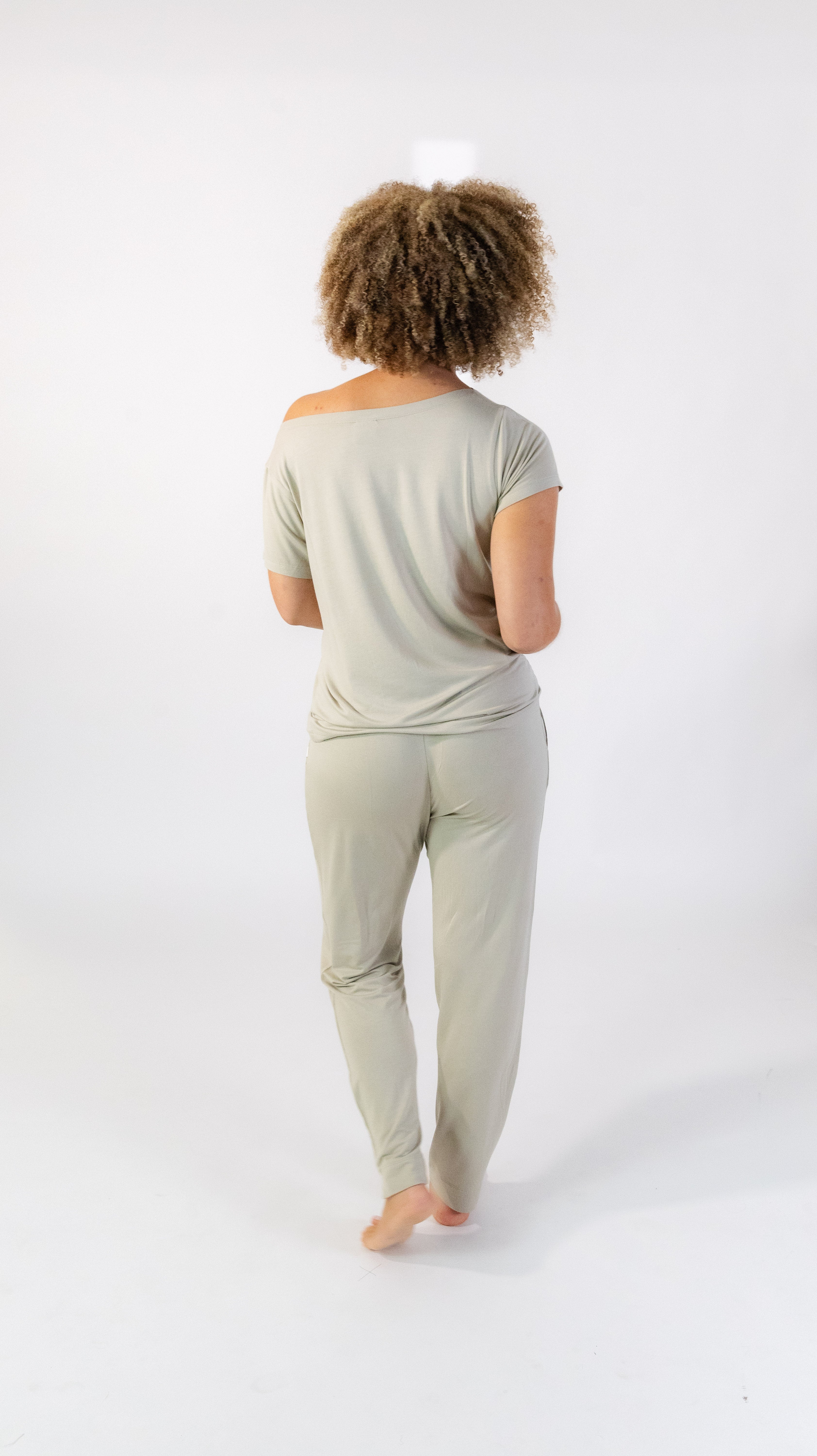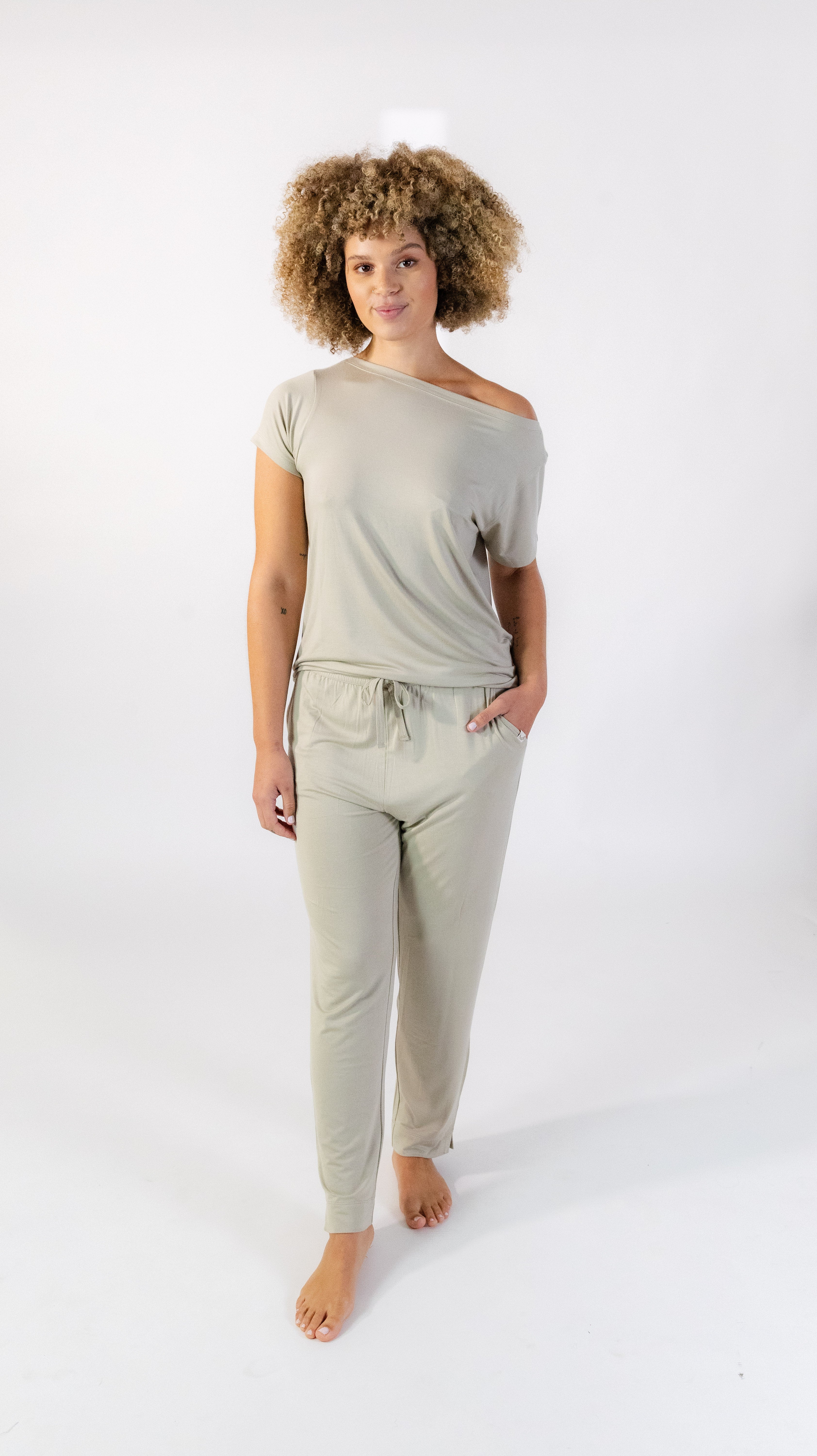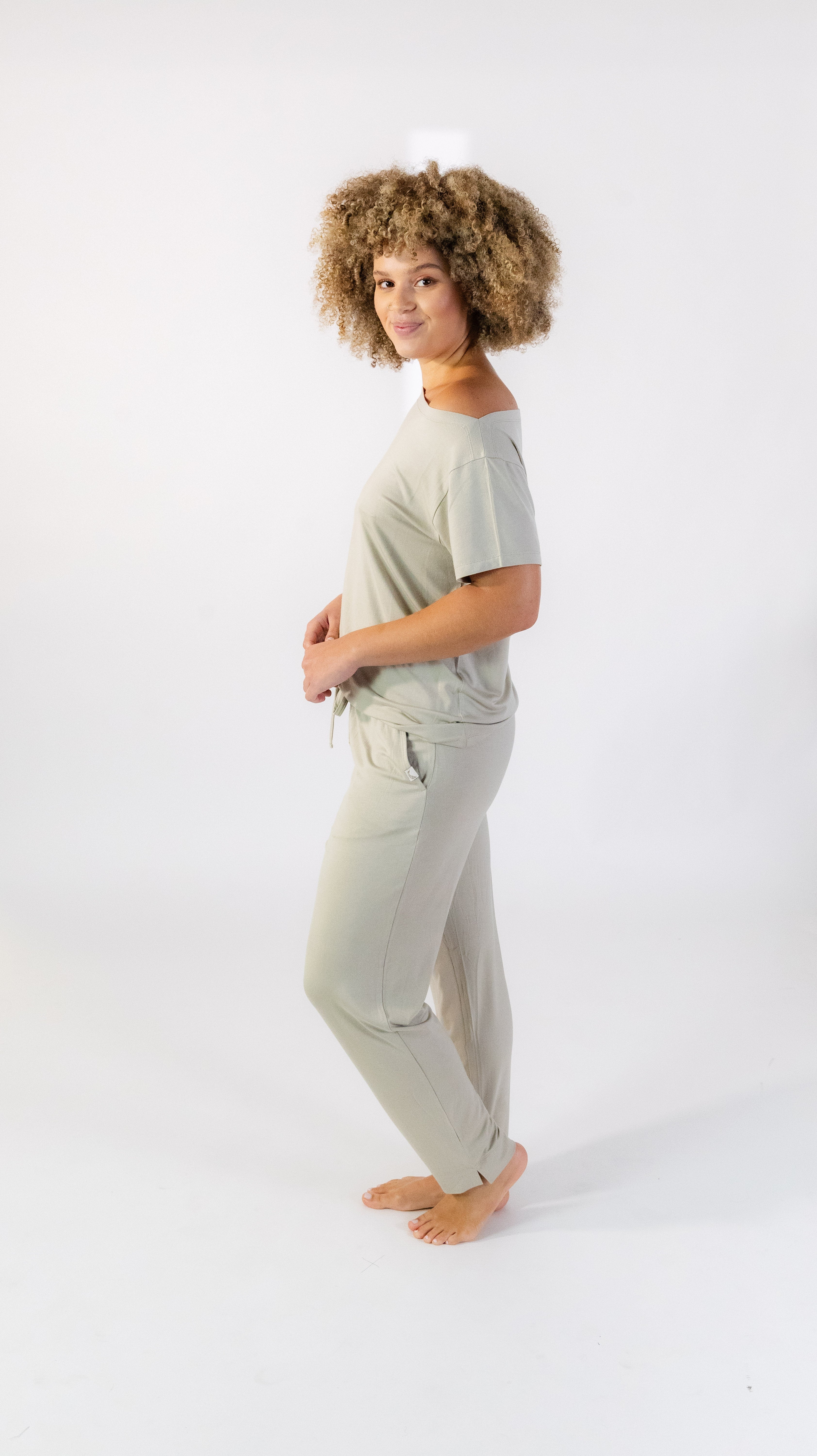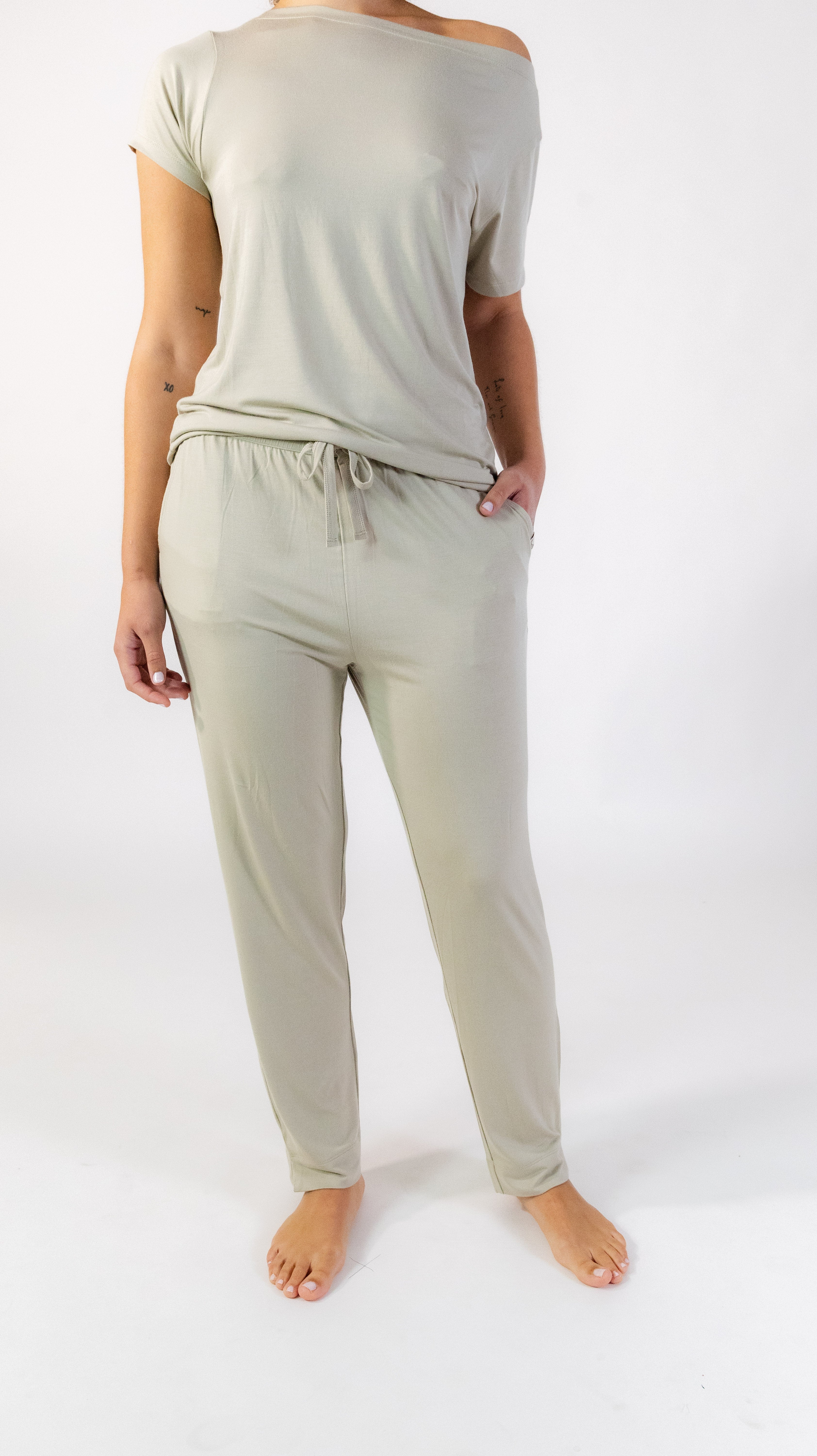 Our women's loungewear tapered long pants are designed to offer both comfort and style for your everyday relaxation. These pants are made from modal with a waistband and pockets, adding functionality to your loungewear collection. The tapered silhouette of these pants creates a modern and flattering look. They are designed to provide a comfortable fit around the waist and hips, gradually narrowing down towards the ankles. This design not only enhances your overall appearance but also allows for ease of movement. Featuring a one-and-a-half-inch waistband, with drawstring, these pants offer an adjustable fit to suit your preference. The waistband, with drawstring ensures a secure and comfortable hold, preventing any discomfort or slippage while you go about your day. Whether you are lounging at home or running errands, these pants will keep you feeling relaxed and supported.