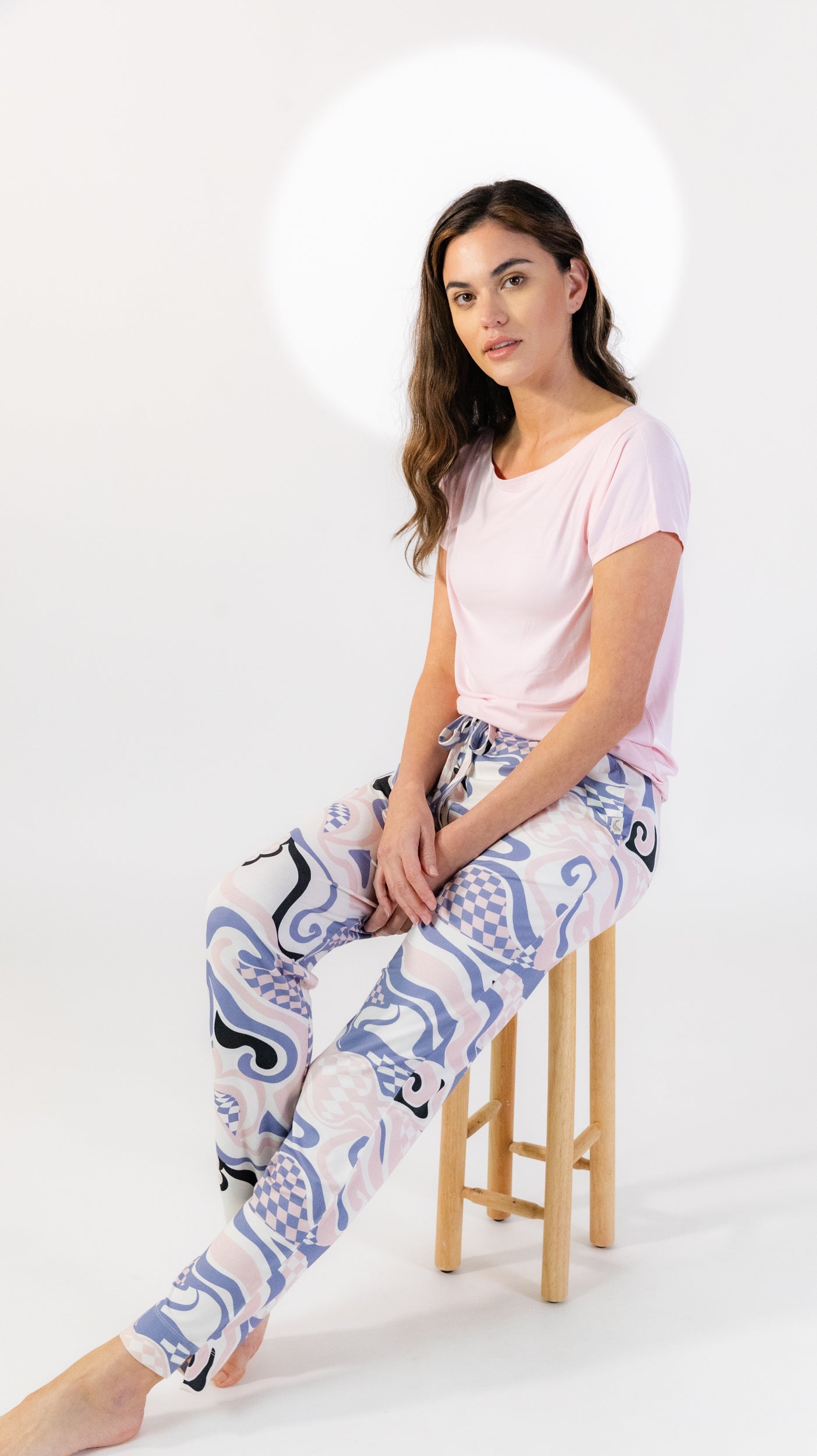 Our women's loungewear tapered long pants are designed to offer both comfort and style for your everyday relaxation. These pants are made from modal with a waistband and pockets, adding functionality to your loungewear collection. The tapered silhouette of these pants creates a modern and flattering look. They are designed to provide a comfortable fit around the waist and hips, gradually narrowing down towards the ankles. This design not only enhances your overall appearance but also allows for ease of movement. Featuring a one-and-a-half-inch waistband, with drawstring, these pants offer an adjustable fit to suit your preference. The waistband, with drawstring ensures a secure and comfortable hold, preventing any discomfort or slippage while you go about your day. Whether you are lounging at home or running errands, these pants will keep you feeling relaxed and supported.
