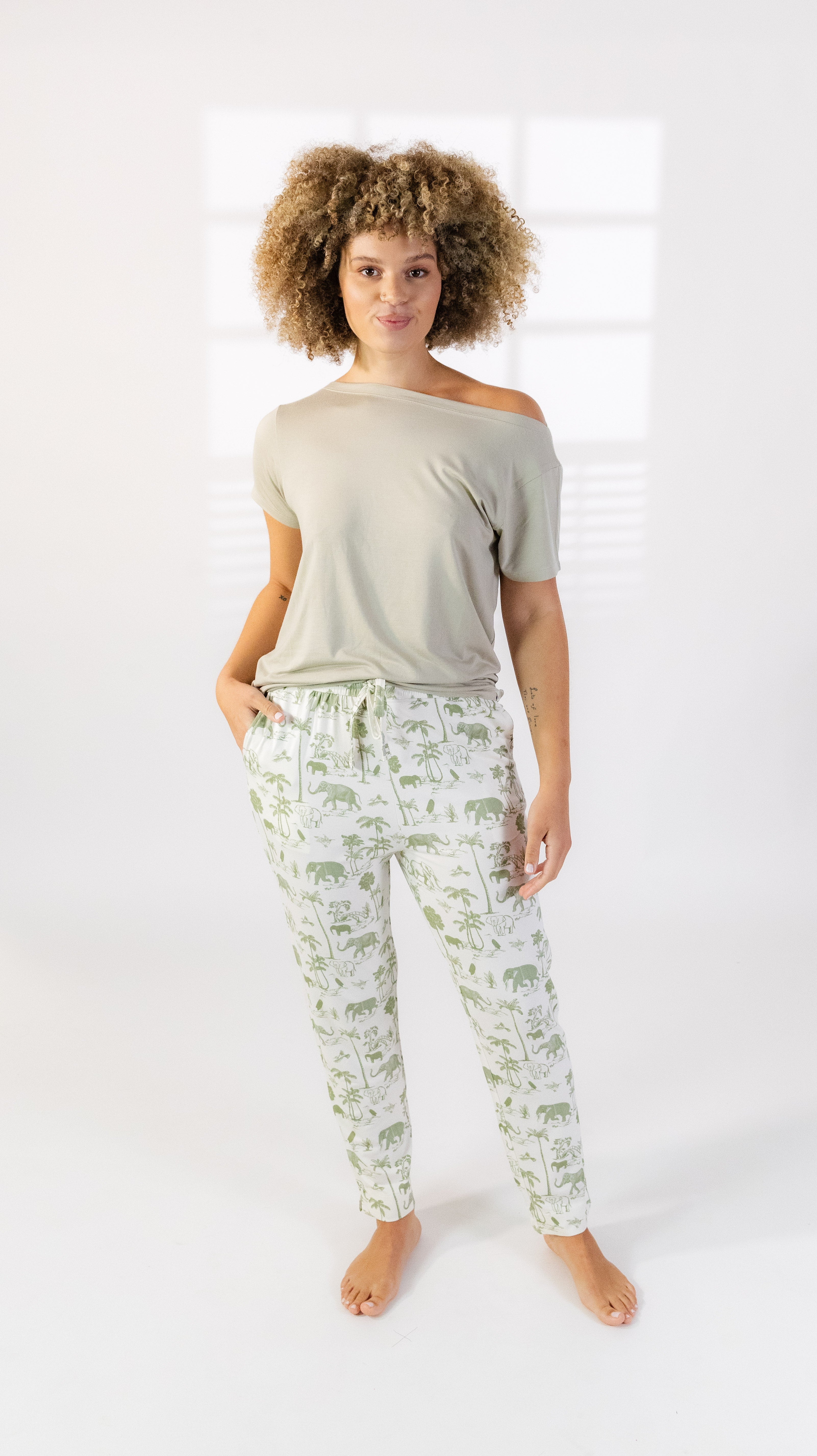 Our women's loungewear tapered long pants are designed to offer both comfort and style for your everyday relaxation. These pants are made from modal with a waistband and pockets, adding functionality to your loungewear collection. The tapered silhouette of these pants creates a modern and flattering look. They are designed to provide a comfortable fit around the waist and hips, gradually narrowing down towards the ankles. This design not only enhances your overall appearance but also allows for ease of movement. Featuring a one-and-a-half-inch waistband, with drawstring, these pants offer an adjustable fit to suit your preference. The waistband, with drawstring ensures a secure and comfortable hold, preventing any discomfort or slippage while you go about your day. Whether you are lounging at home or running errands, these pants will keep you feeling relaxed and supported.