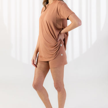Our women's short sleeve sleeping tee is designed to elevate your loungewear experience. Made from premium modal fabric, this tee combines comfort, style, and functionality for a truly blissful night's sleep. Featuring short sleeves and a relaxed fit, this sleep tee offers the perfect balance of breathability and coverage. The side panels add a touch of modern flair, enhancing the visual appeal and giving it a distinctive look. Pair this tee with our Newport Short to complete the look. Designed with your comfort in mind, this sleep tee is perfect for lounging around the house or drifting off to dreamland.