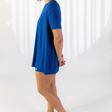 Our women's short sleeve sleeping tee is designed to elevate your loungewear experience. Made from premium modal fabric, this tee combines comfort, style, and functionality for a truly blissful night's sleep. Featuring short sleeves and a relaxed fit, this sleep tee offers the perfect balance of breathability and coverage. The side panels add a touch of modern flair, enhancing the visual appeal and giving it a distinctive look. Pair this tee with our Newport Short to complete the look. Designed with your comfort in mind, this sleep tee is perfect for lounging around the house or drifting off to dreamland.