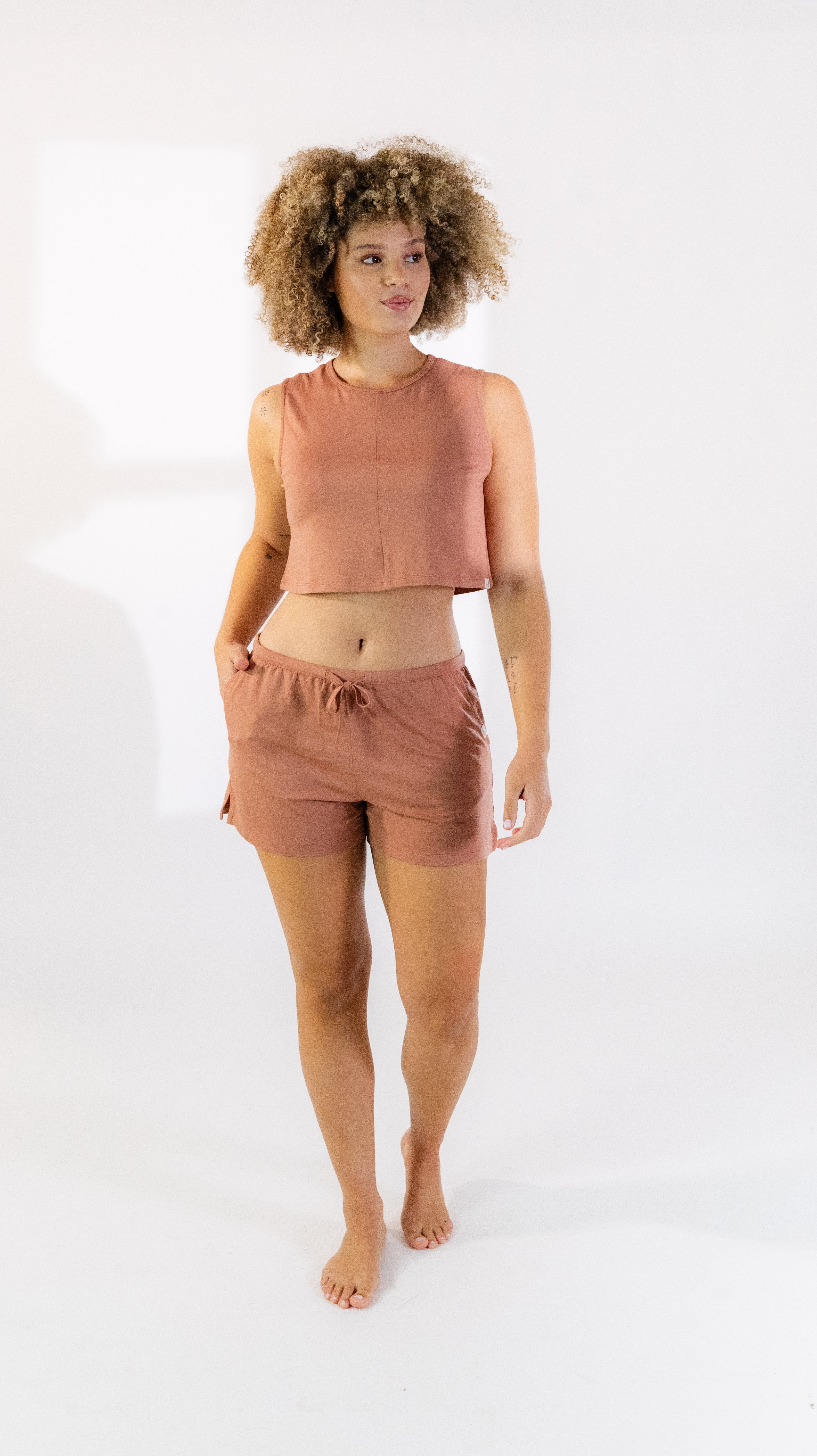 Experience comfort and freedom of movement with our relaxed fit lounge shorts. These shorts are designed with a relaxed fit and feature an elastic waistband with an adjustable drawstring, allowing you to customize the fit to your liking. Made from modal, these lounge shorts are incredibly soft and lightweight, making them perfect for lounging around the house or running errands. The fabric is breathable and moisture-wicking, ensuring you stay cool and dry even during warmer days. Pair with one of our tees or tanks to complete the look and feel. The shorts come with pockets, providing a secure place to store small essentials like keys or a phone. Whether you are relaxing at home or heading out for a casual outing, these shorts offer both comfort and functionality.