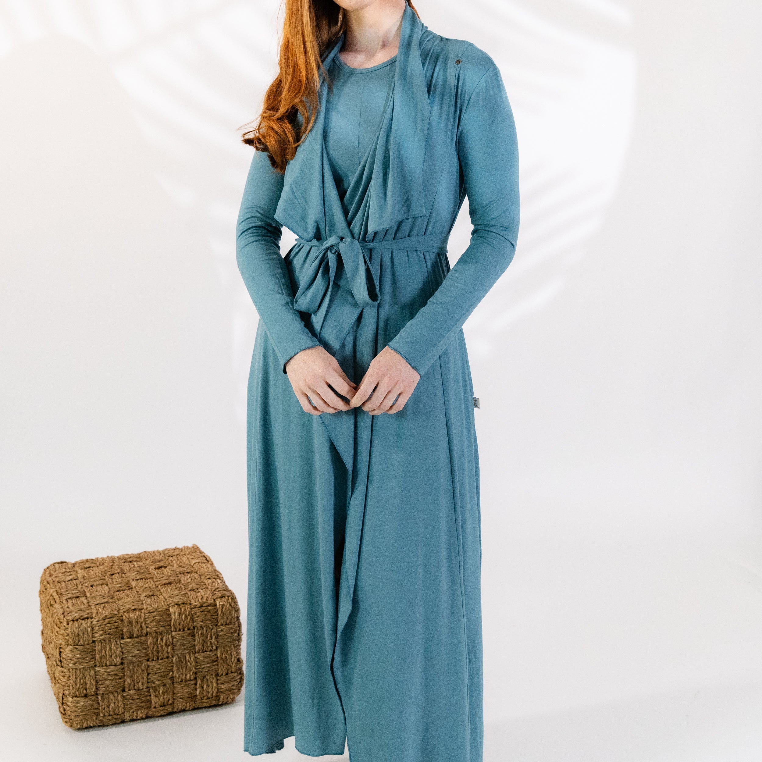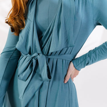 Luxuriate in comfort and elegance with our long drape robe. This exquisite robe is crafted from modal, a soft and lightweight fabric known for its breathability and silky texture. Designed specifically for women's loungewear, this robe features a long length that drapes beautifully, providing a sophisticated and flattering silhouette. The french hem adds a touch of elegance and refinement to the overall design. Modal fabric is not only incredibly soft against the skin but also has excellent moisture-wicking properties, ensuring you stay cool and dry throughout the day. It is the perfect choice for lounging at home or even as a stylish cover-up for a spa day or poolside relaxation. With its versatile design, this robe can be worn for various occasions. Whether you are enjoying a lazy morning at home, getting ready for a special event, or simply indulging in some self-care, this robe will make you feel pampered and stylish.