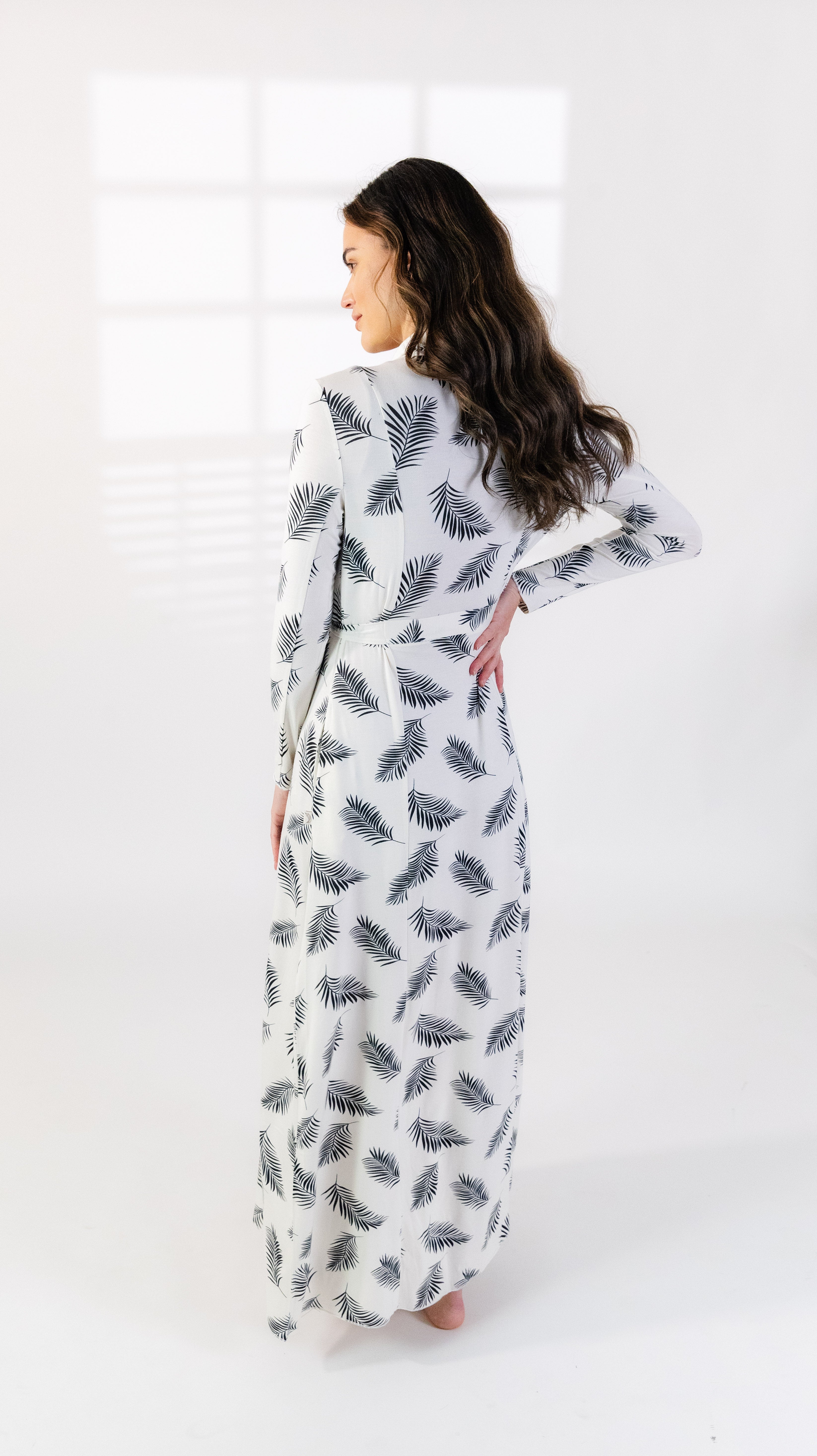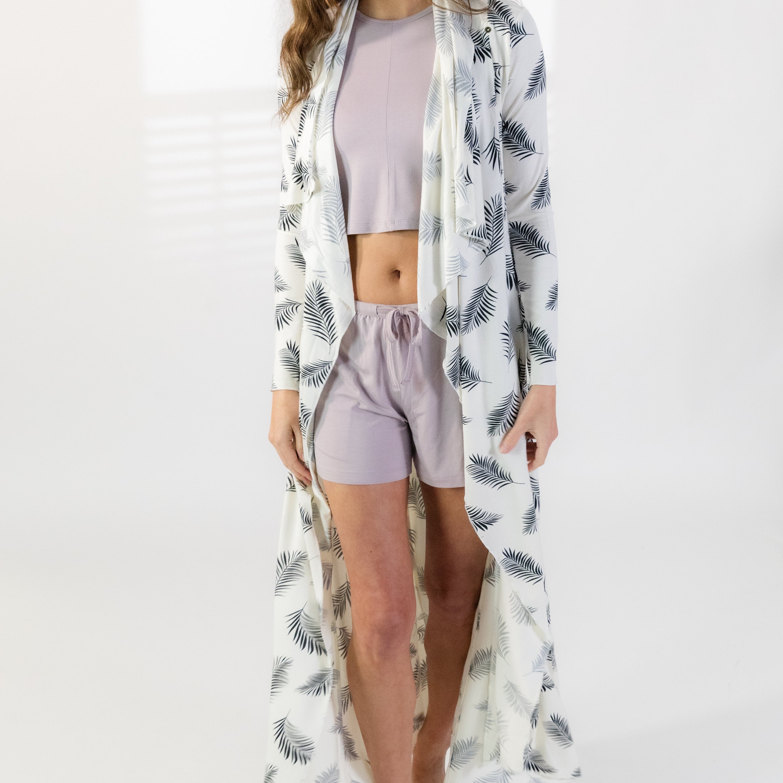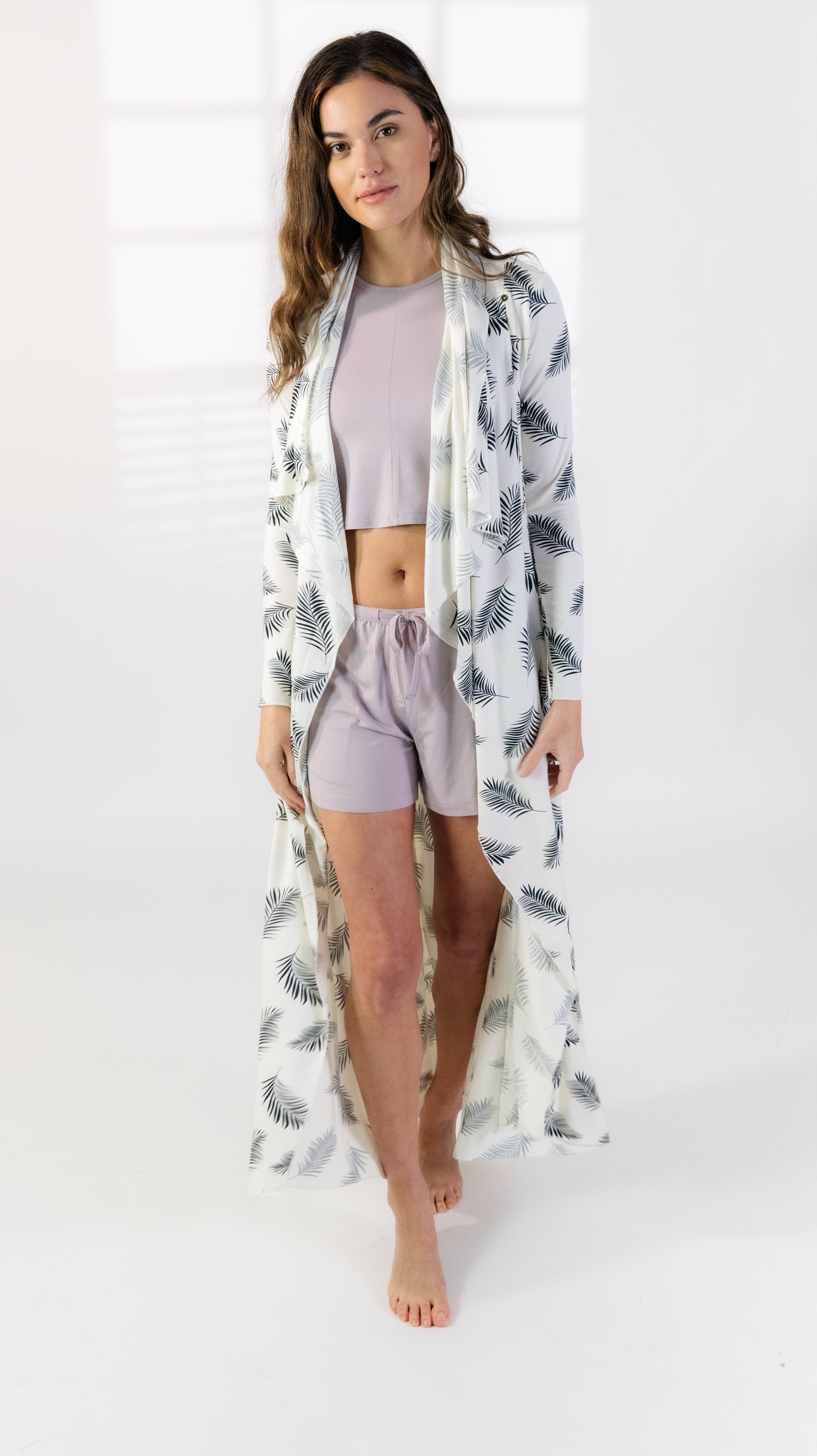 Luxuriate in comfort and elegance with our long drape robe. This exquisite robe is crafted from modal, a soft and lightweight fabric known for its breathability and silky texture. Designed specifically for women's loungewear, this robe features a long length that drapes beautifully, providing a sophisticated and flattering silhouette. The french hem adds a touch of elegance and refinement to the overall design. Modal fabric is not only incredibly soft against the skin but also has excellent moisture-wicking properties, ensuring you stay cool and dry throughout the day. It is the perfect choice for lounging at home or even as a stylish cover-up for a spa day or poolside relaxation. With its versatile design, this robe can be worn for various occasions. Whether you are enjoying a lazy morning at home, getting ready for a special event, or simply indulging in some self-care, this robe will make you feel pampered and stylish.